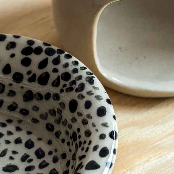 Miseczka pokryta ręcznie malowanym wzorem w ciapki.